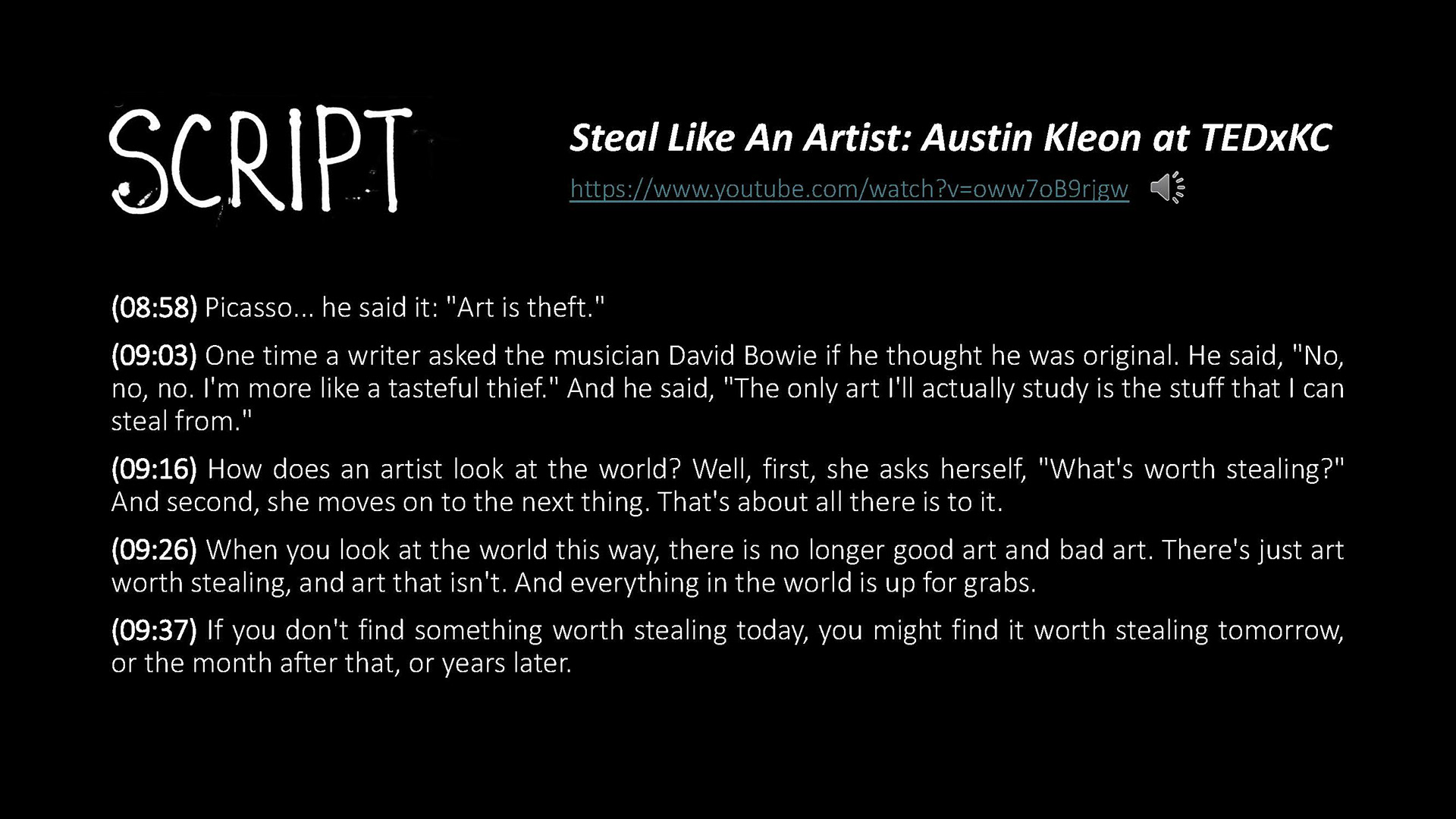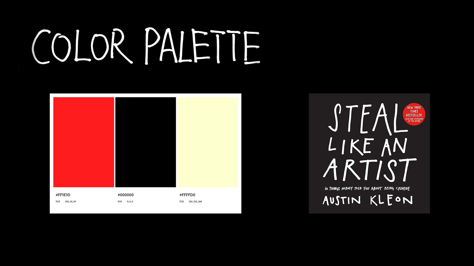 This is an innotation project for Austin Kleon's TED talk: Steal Like An Artist. Through the project, the main goal is to show author's creative thinking through typography.