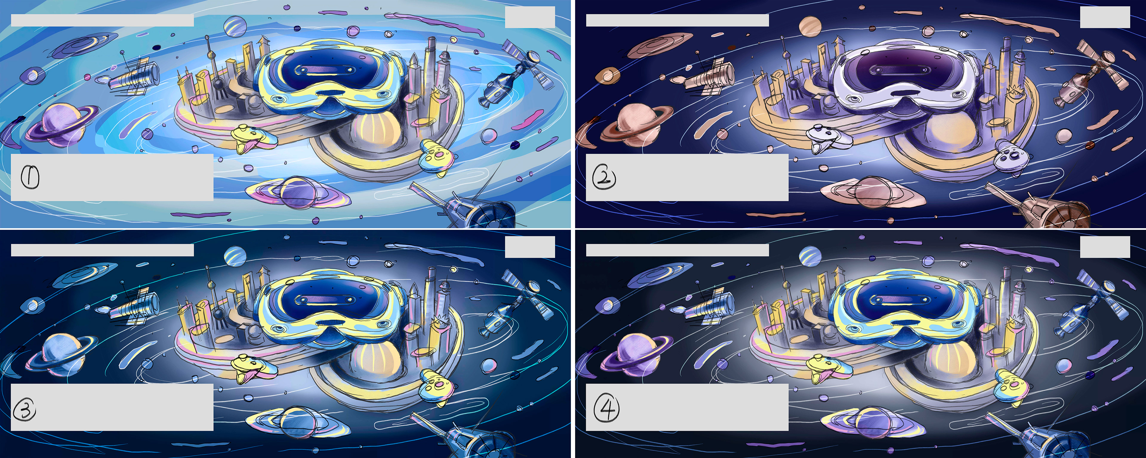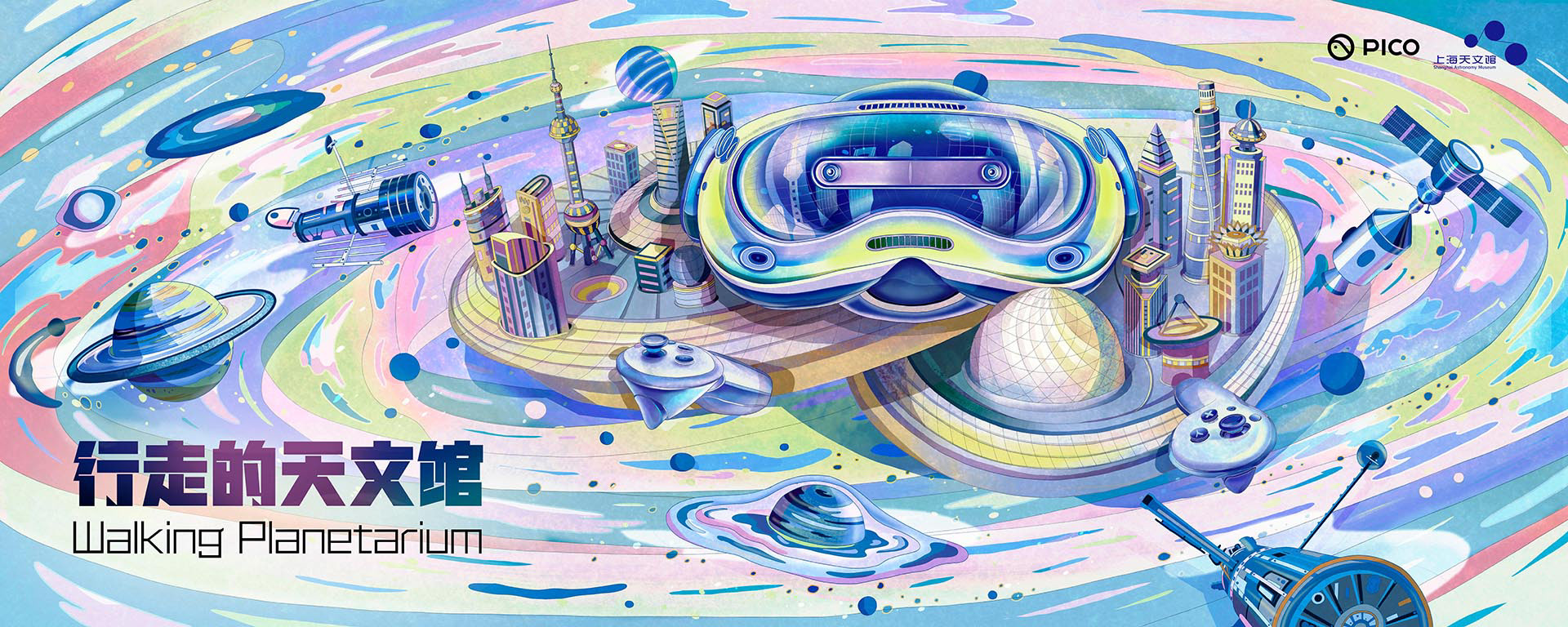 In response to the 2025 National Science Popularization Month, the Shanghai Astronomy Museum collaborates with the VR brand PICO to launch “Walking Planetarium”, an outreach project that brings the wonders of space exploration beyond the museum walls. Through XR / VR technology, classic exhibitions such as “Optical Planetarium” and “Journey Through the Galaxy” are digitally reconstructed, allowing students to “walk through the universe” and experience astronomy in a more immersive and interactive way. This advertising illustration aims to bring science to life through art, inspiring curiosity and creativity among young audiences. It serves not only as a visual centerpiece for the campaign but also as a symbol of the collaboration between technology and imagination.
